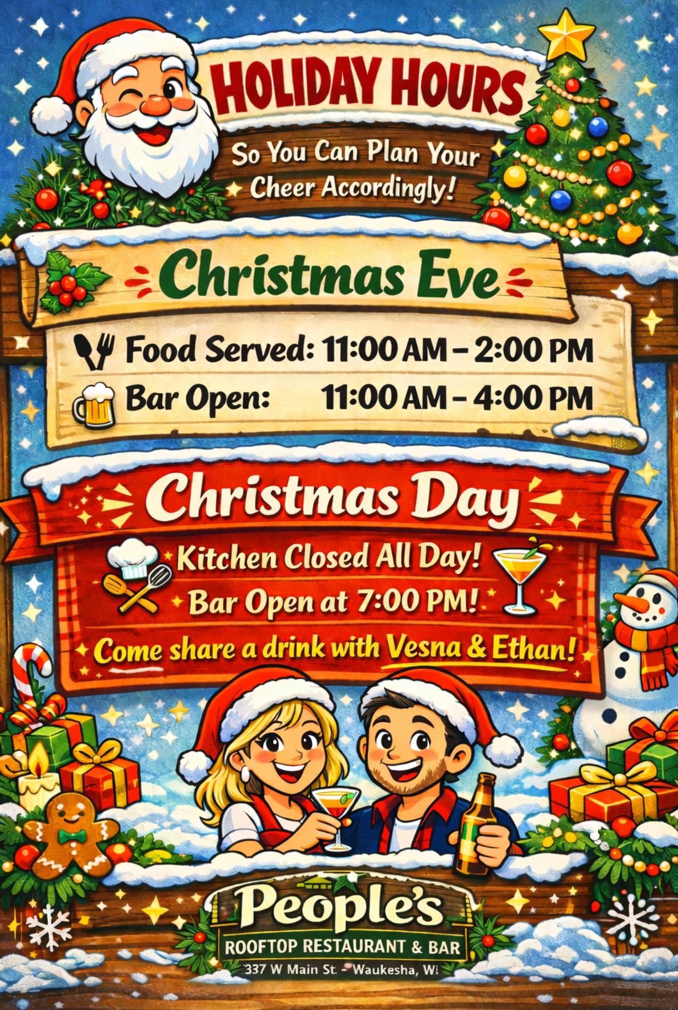 Everyone’s favorite place for the holidays with festive drink specials and food specials. Join us after a show at the Waukesha Civic Theater for a special 10% Discount with your ticket stub!